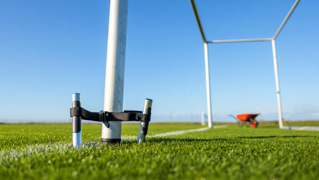 Les terrains synthétiques nécessitent des ancres spécifiques : souvent des vis d’ancrage ou des plaques vissées. Les pelouses naturelles demandent des scellements plus profonds ou des anchors amovibles selon l’usage. Pour les salles, l’installation de buts de futsal 3 m x 2 m doit tenir compte du revêtement et des contraintes de rangement.